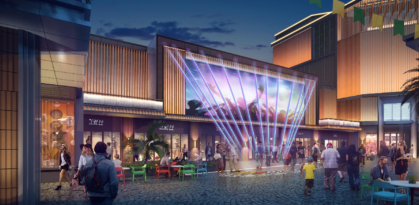 项目将建设10栋具有南美热带雨林风格的现代特色建筑,结合葡萄牙传统经典风格提取亚马逊雨林的色彩和珍稀物种蓝蝴蝶的设计元素,形成特征化的建筑语言,彰显项目主题性。园区通过设置桑巴广场、蓝蝴蝶广场、大力神杯广场、涂鸦隧道、24小时时光长廊等景观艺术地标,营造了极具体验感的南美风情欢乐街区,以2和南美文化相结合的方式重新定义长春商业休闲新模式。