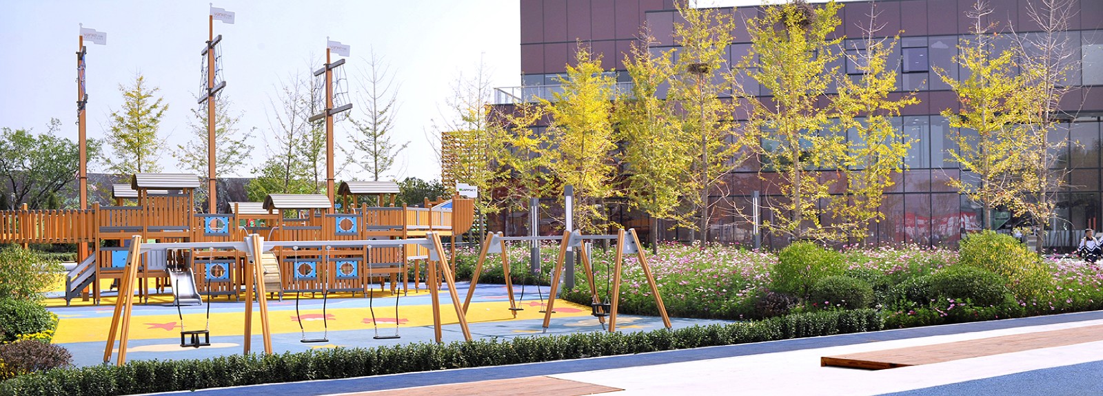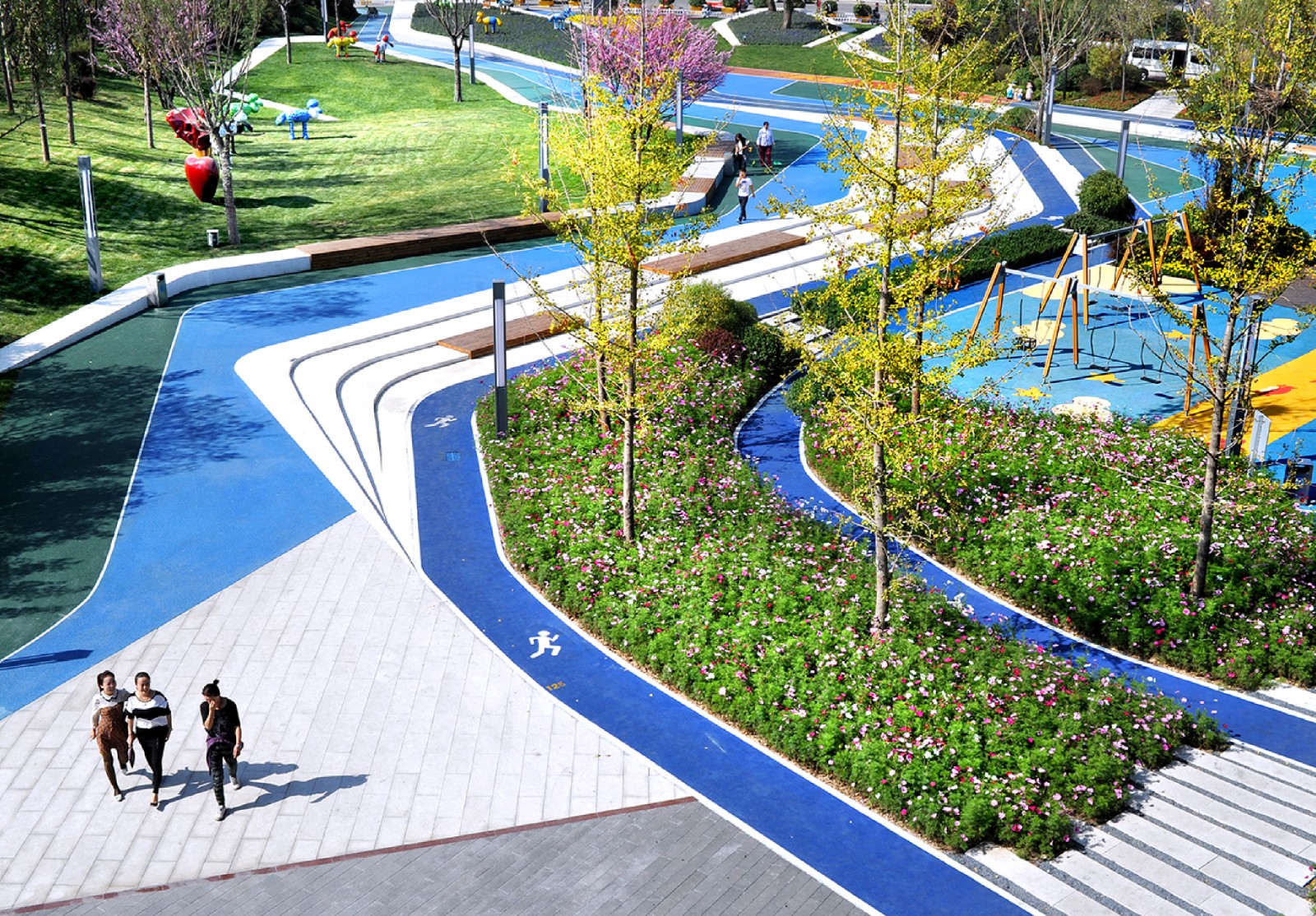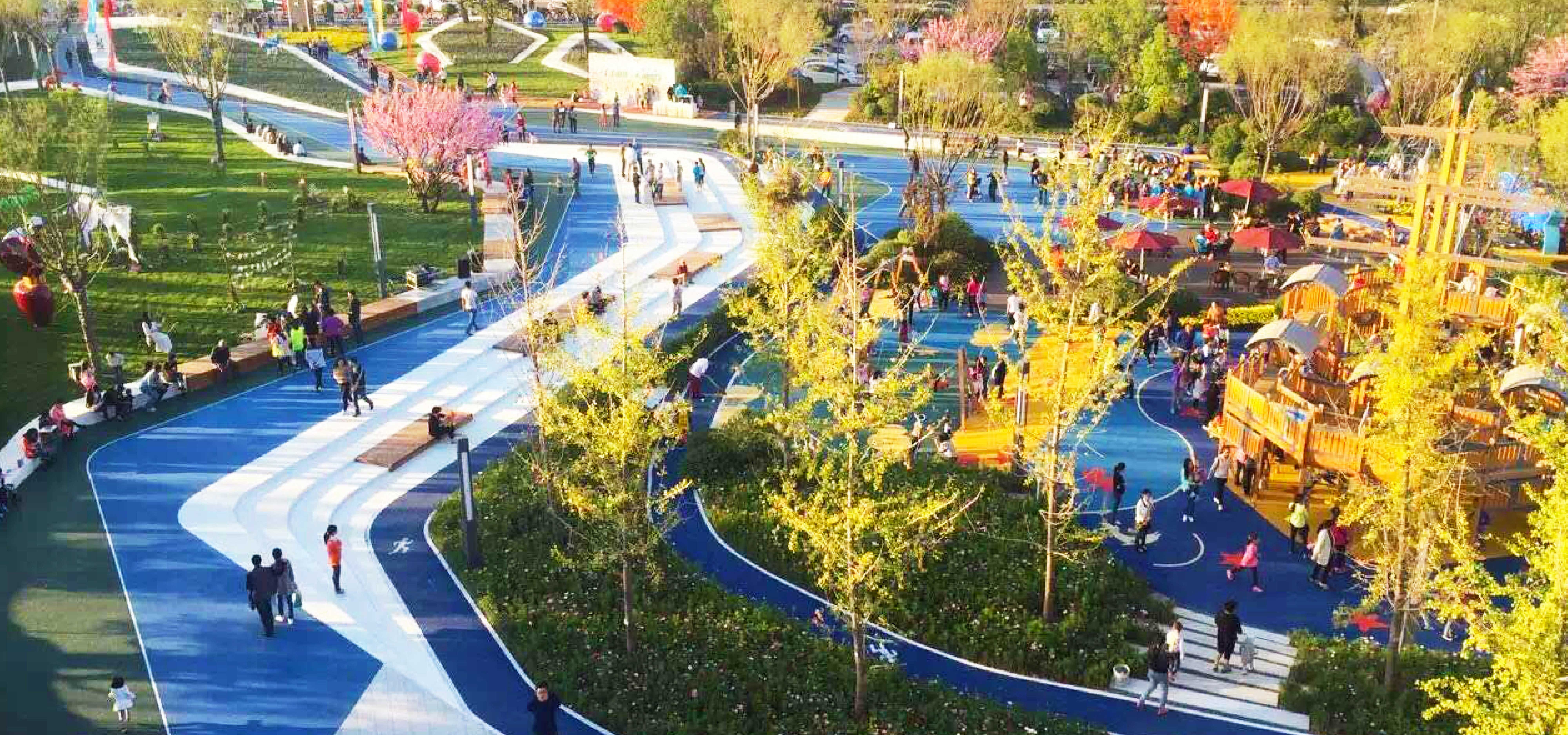 灵活的场地为集会,健身,广场舞,婚纱摄影等活动提供了多种可能性;也满足了地产营销活动需求。现有的乔木得到了最大程度的保留,土方地形都在场地内填挖完成。新型透水环保景观材料被应用的项目中并取得了低价格高品质的效果。这是一个让商业,环境与百姓三方达到和谐共生的临时性景观项目。