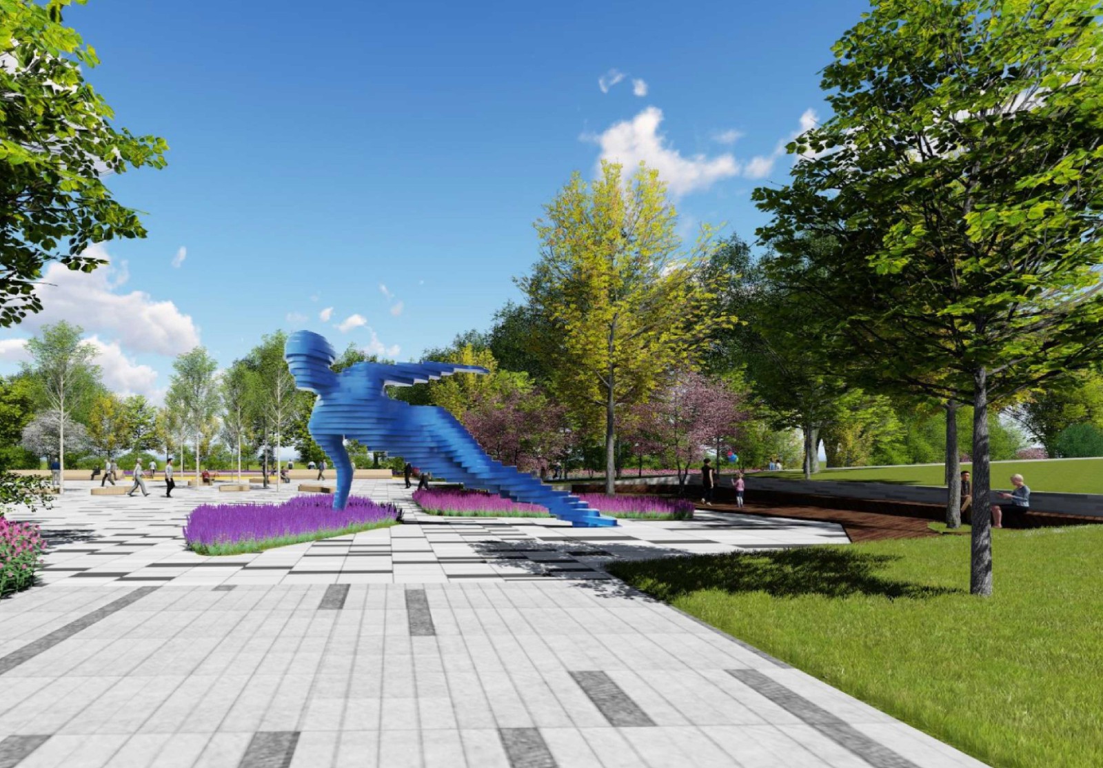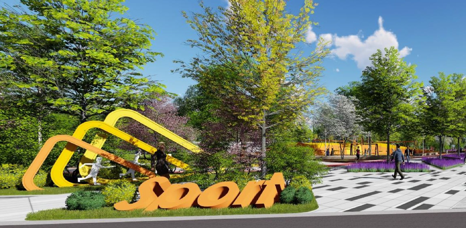 陆玛重点打造在主城区主要人流来向的公园入口处,将良好和谐的景观形象展示给太原的市民。项目围绕建筑设置一片景观广场,在满足不同人群使用的同时具备一定的疏散与营销功能。在全龄活动区设计了可满足全年龄段人群使用的木平台,周边设置安逸温润的休憩空间。