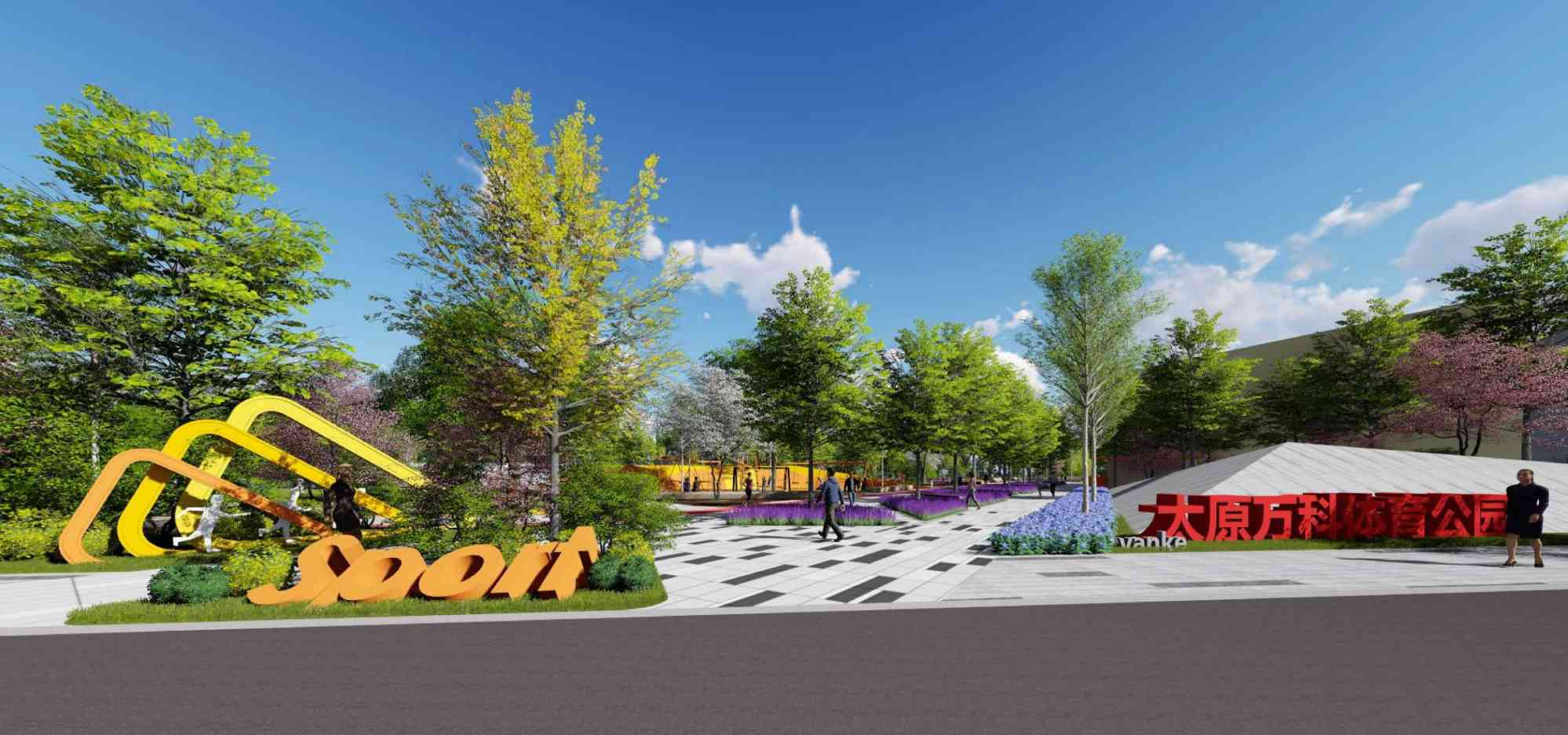 项目用地位于山西省太原市,和平北路与金桥西街交界处,中环路外,环城高速以内区域, 紧邻汾河,属于尖草坪区,距离市中心约10KM。旨在让体育公园的生机“唤醒’城市生活;打造太原“城市名片”级运动公园。陆玛以三角形的集合形态为设计元素,融入到“能量块”的设计理念中去,多种场地串联,形成了形式感极强的场地平面。同时结合运动公园自身的功能属性,在场地上运用了明快鲜亮的色彩,带来前卫时尚,简洁有趣,造价可控的运动场地。