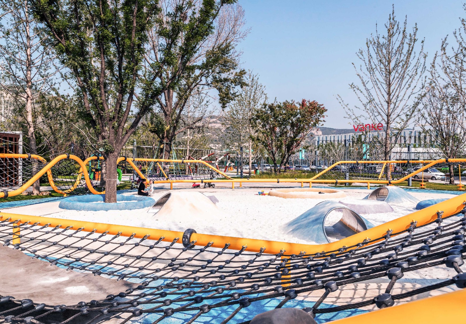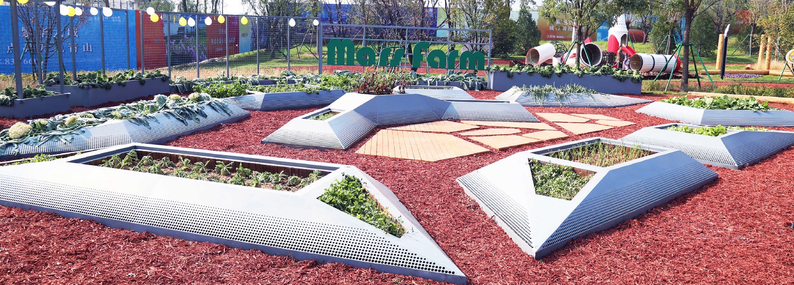 星球乐园以“奇幻外太空”为灵感展开联想,以外星人坠落地球,与地球人友好相处为故事线,串联启程(外星人坠落地球)一初遇(星战竞技场)一发现(千年隼)一探索(感官花园)-寻觅(火星殖民地)-惊现(银河花海)一联络(大地艺术)主题空间,以叙事化设计搭建场地的空间骨架,提高场地辨识度,用景观语言赋予一段与外星人对话的探索与遐想,打造沉浸式亲子成长互动趣味空间。