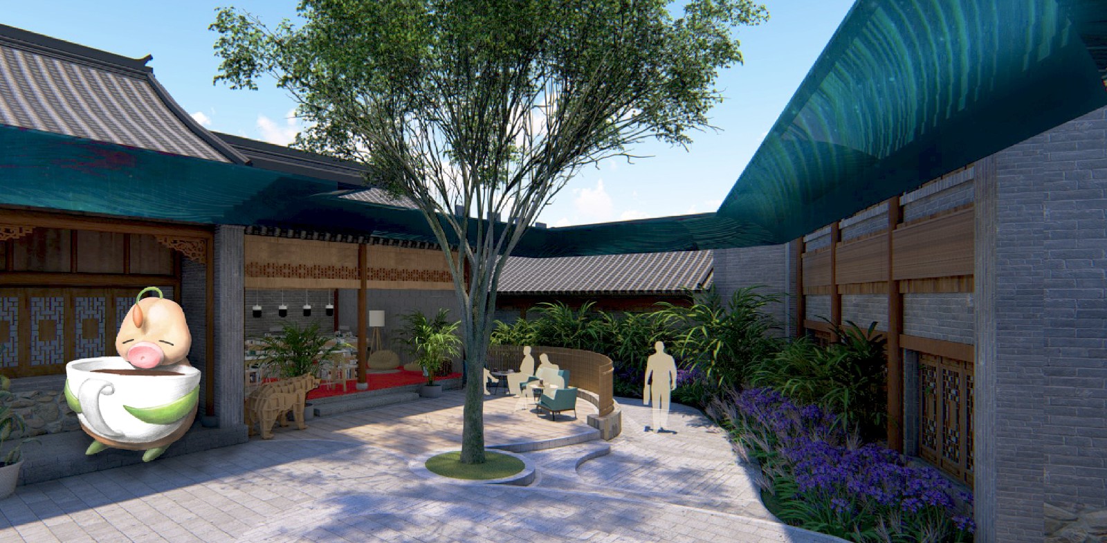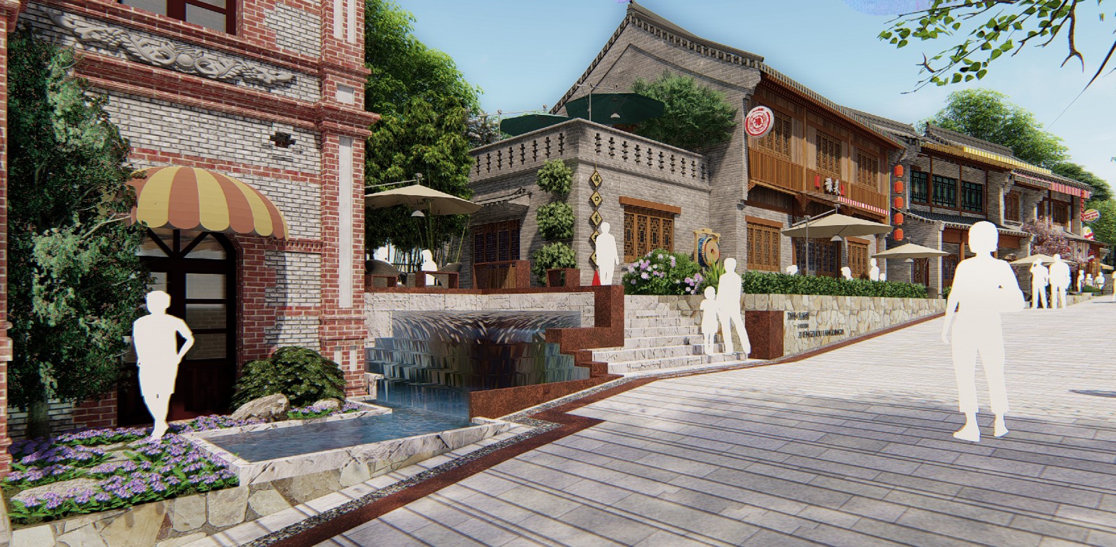 基于在地文化延展,融合当代艺术理念,巧妙运用现代景观设计手法,实现潮流时尚与传统古朴的交流碰撞。打造出集生态、科技、艺术、生活及文化的五维小镇,在空间布局上以“乐”、“奇”、“雅”、“兴”、“盛”为主题。小镇场域气质透过颜色的逐渐增递,由传统风貌逐步转为国际新潮。整体形成一幅穿越时空的处处是景,步步入画的小镇画卷。