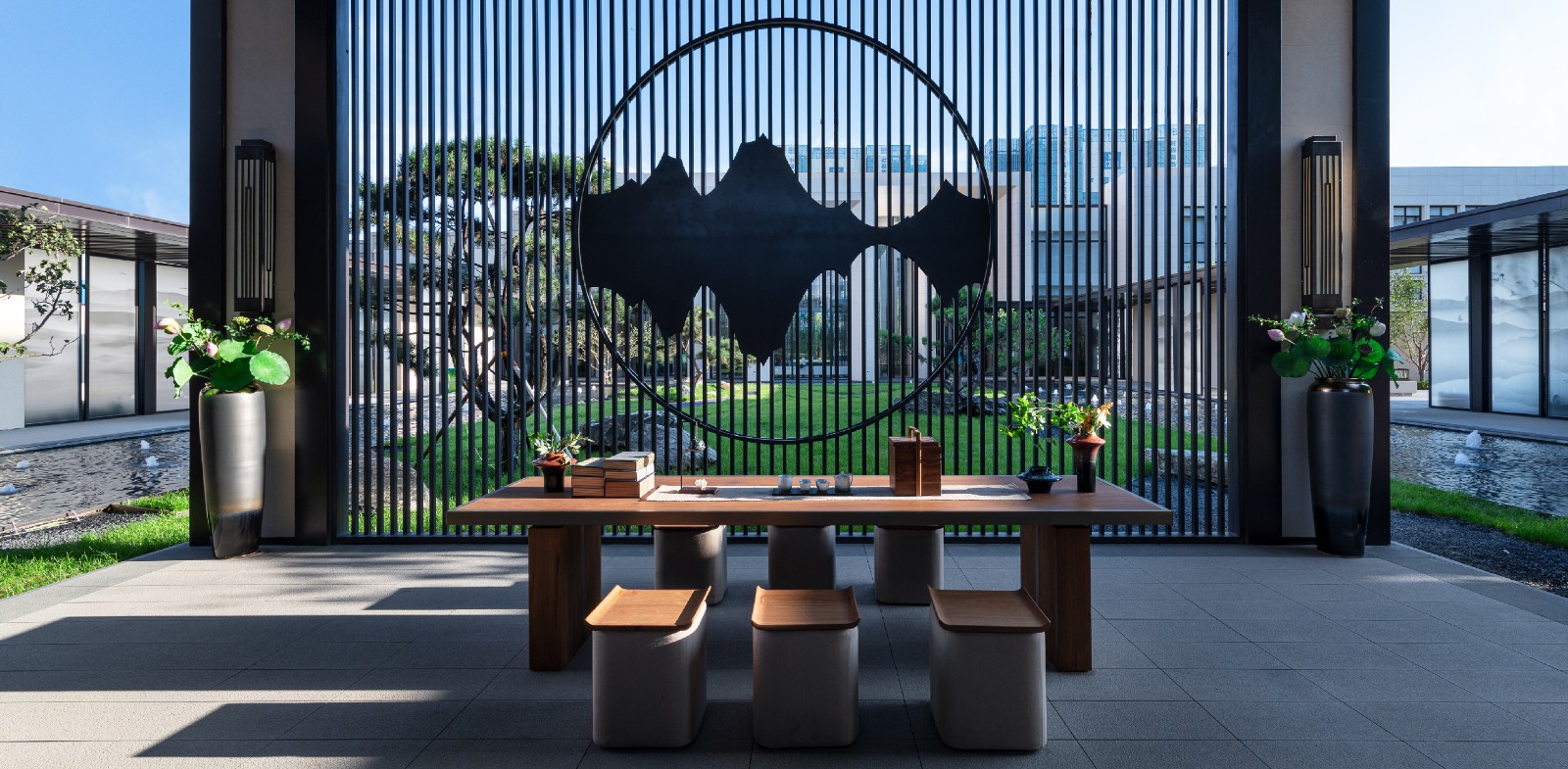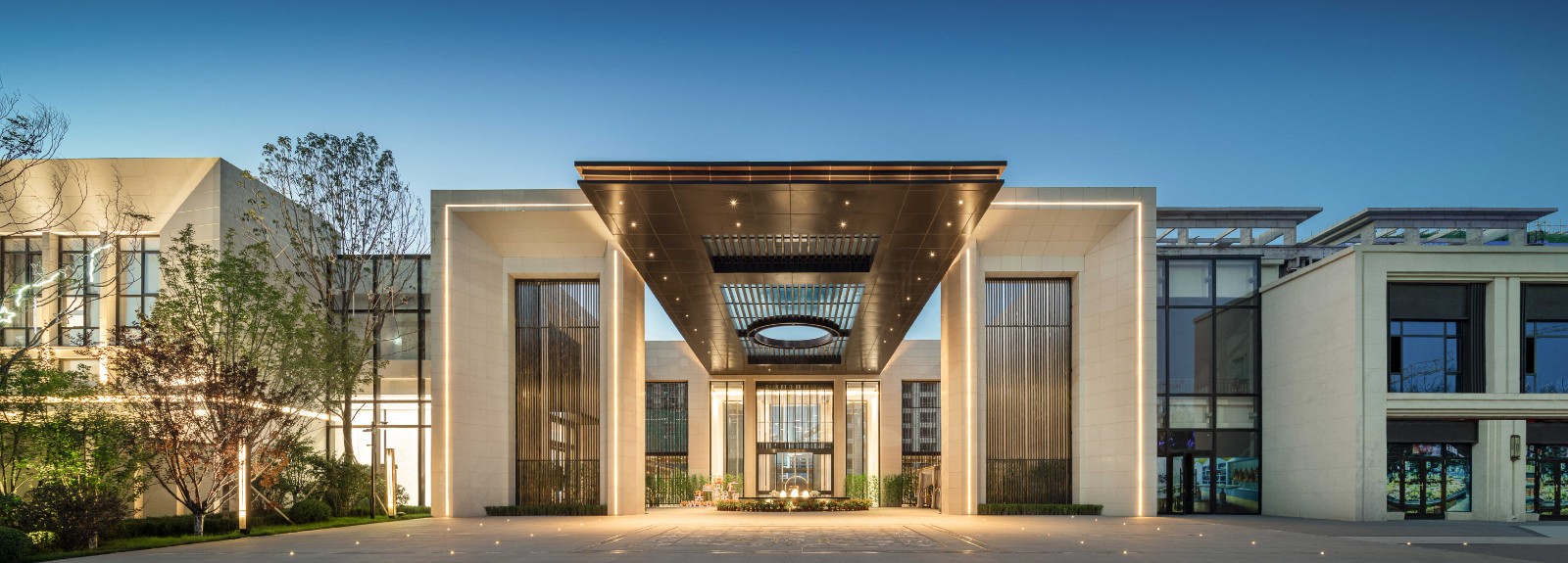 美悦府追求的是仙家意境和仙灵秀美,依托层层递进的景观空间和巧妙的造景手法,在经纬间交错相携,明暗冷暖交相呼应,色彩流动变幻间营造出缥缈空灵的仙家气息。将千古名篇“梦游天姥吟留别”中所描绘的梦幻仙境呈现于世人眼前。