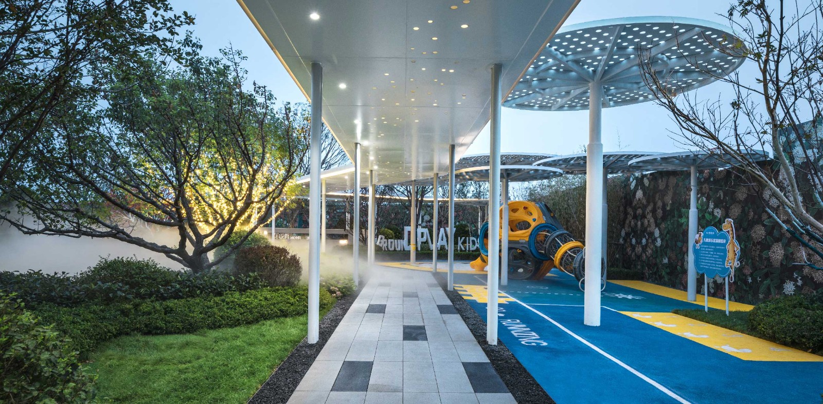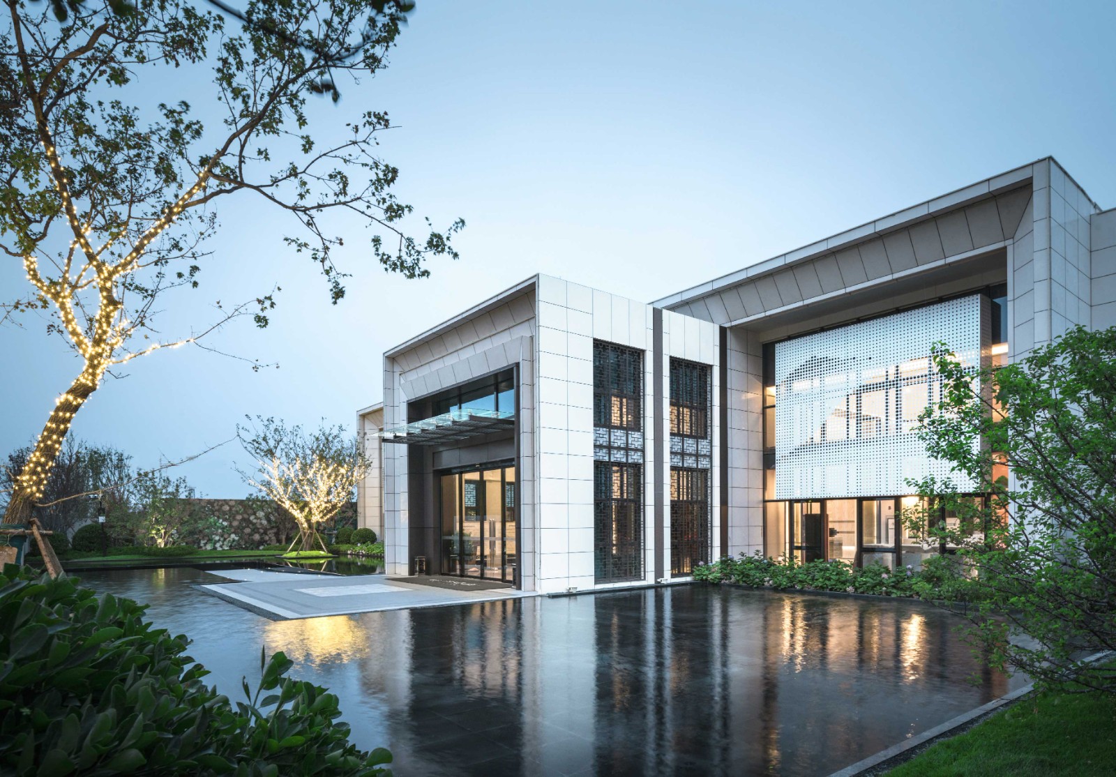 陆玛起初想要打造围合式的景观空间,通过多层次转换空间的穿行拉长整个前场的参观动线,但是这样的处理手法除了受到空间尺度的局限外,外围市政界面、景观与建筑之间也被分隔开,缺少了它们之间的对话。而锦观城项目需要一种包容和活力来唤醒这座城市,而不是将自身封闭。所以陆玛将建筑作为景观的一部分,来打造一个开敞的城市展示界面,欢迎每一位到访的朋友们,以开放的姿态拥抱这座城市,拥抱生活。受“Lessis More”的理念启发,陆玛呈现了一个如艺术馆一样干净纯粹的空间,从步入场地开始就是一场展览,在空间中对话自然,找到自我。