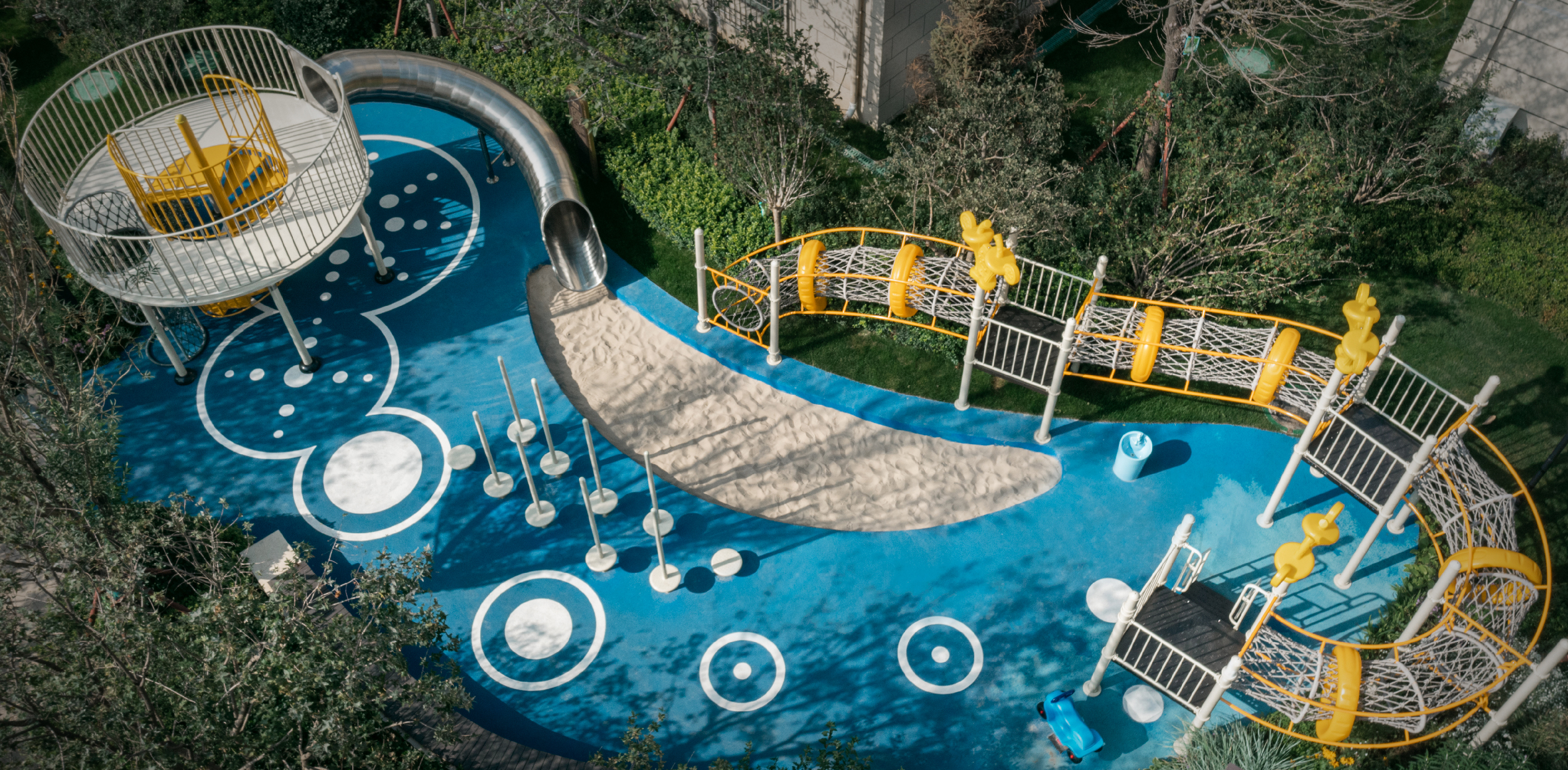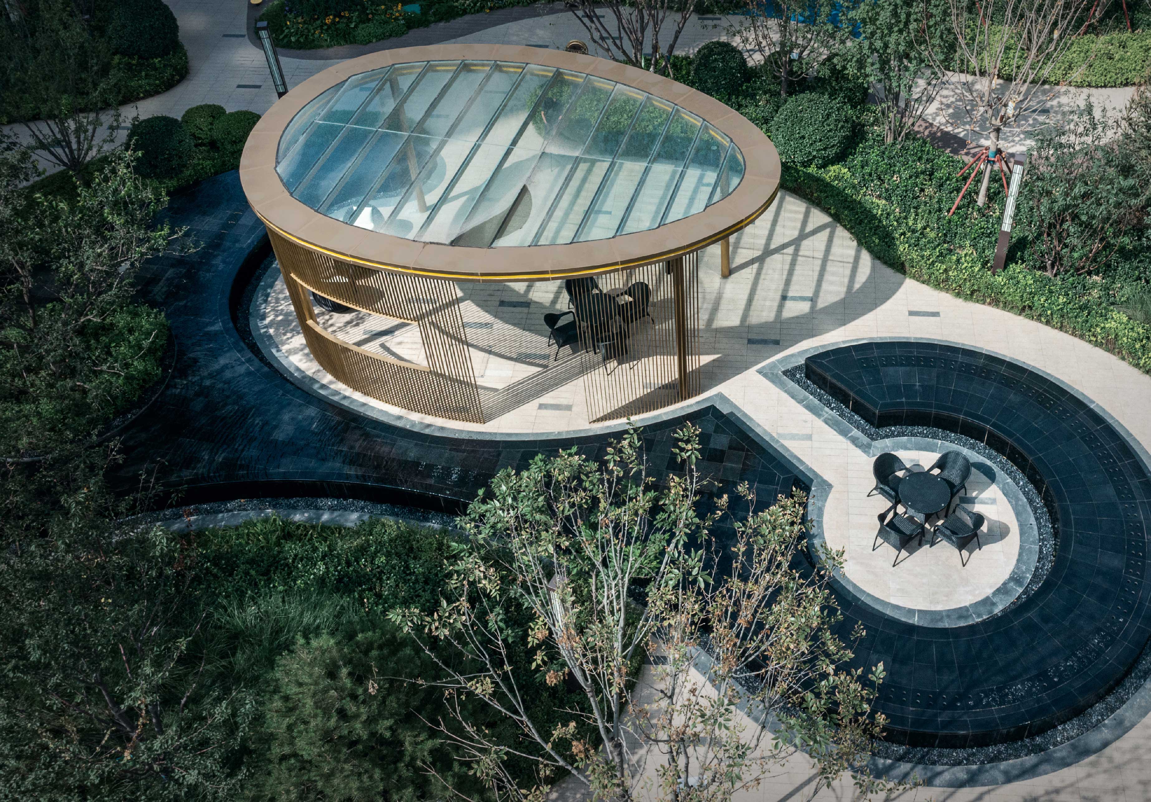 水岸安谧的会客廊架,藏在绿屿水涧中的亲水包厢,提供了静谧、放松的洽谈空间,是家人闲余时小聚的地方,也是接待友人的户外客厅,是长风公馆美好社区生活的缩影。林下落日会客厅,将森林秘境与日落景观收集,赏景闲聊,是另一种舒缓闲适的“森活”。水中蔓延出一个可以放松身心,在阳光和微风下可以享受时间、感受喜悦的场所。