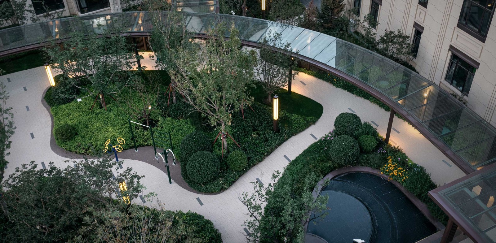 园区通过演绎岛屿的空间形态,曲线的艺术肌理自然的流淌在园中,打造舒适的林下绿岛空间,简洁有效的路径,营造惬意的生活场景感。伴随着光影的流淌,微风拂过,枝叶的印记散落在地面,植物营造出的空间总是自带大自然的疗愈感。植物组合打造出层次感,特色种植结合大乔木形成舒适的林下空间,为空间提供了更多观景视角,具有引导性的弧形线条,延展了空间的进深。沉浸于社区绿色森林中,静享森岛生活。